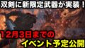【モンハンワイルズ】双剣に新武器が実装!12月3日までのイベントクエスト予定が公開!【イベントスケジュール/調伏の獣/竜都の中心で肉を焦がした者/最新情報/モンスターハンターワイルズ】