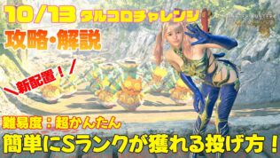 攻略 【新配置攻略🌟】10/13 タルコロチャレンジ攻略・解説!簡単にSが獲れちゃう投げ方を紹介【MHWs】【モンスターハンターワイルズ】 #モンハンワイルズ #モンハン #タルコロチャレンジ #ゲーム 【動画チャプター】00:00 本編開始00:16 本日の配置の説明と攻略方法00:43 攻略動画(説明付き)01:24 本日の攻略判定01:38 定点投げ一発チャレンジ02:36 エンディング毎日更新!タルコロチャレンジ攻略情報を配信してい... 2025.10.13 攻略